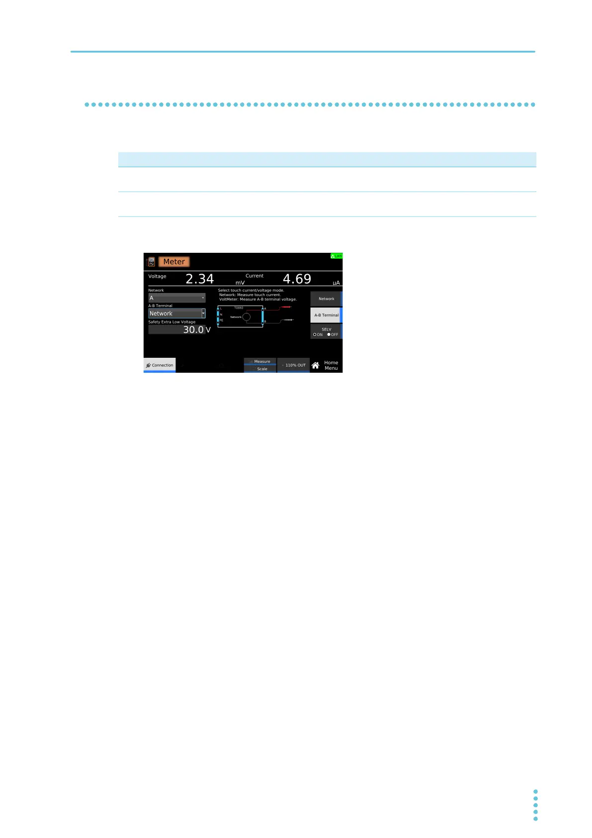 Network Measures the touch current across terminals A and B. The network set in Network (p.204)