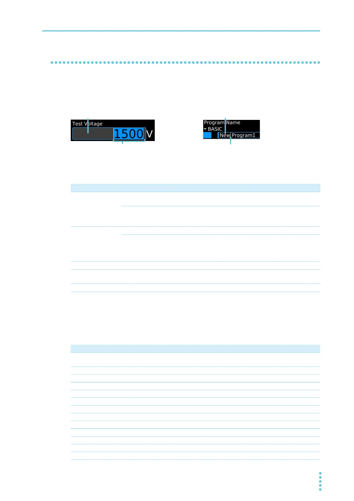 If numbers or characters are selected in an input area, they can be changed. If only a cursor is shown in