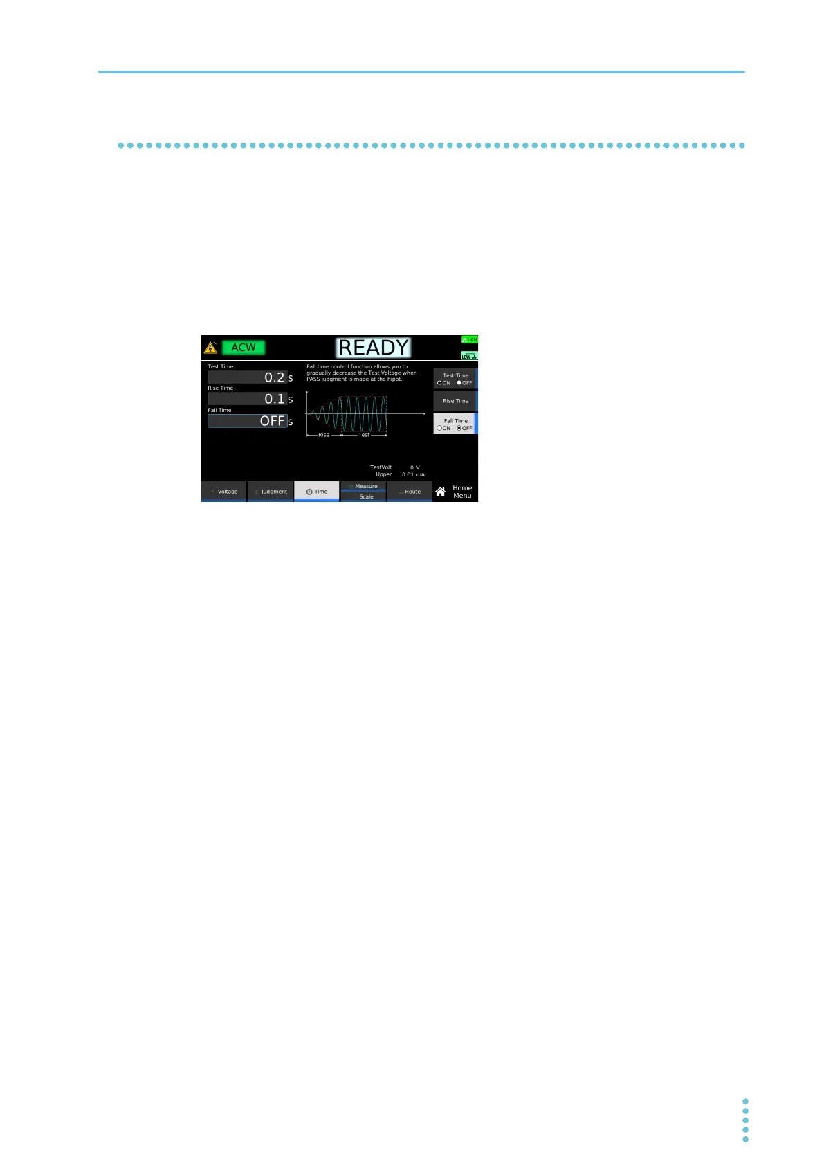 DCW tests, a transition is made to Discharge time (p.68) after the fall time ends. If Fall Time is set to off
