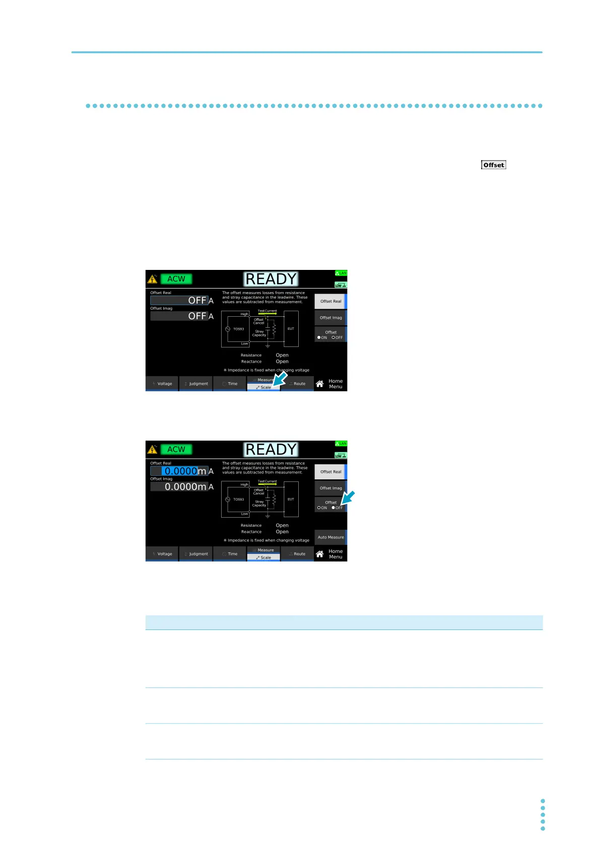 through the stray capacitance of test leads, tools, and the like. If the offset is set to on, appears