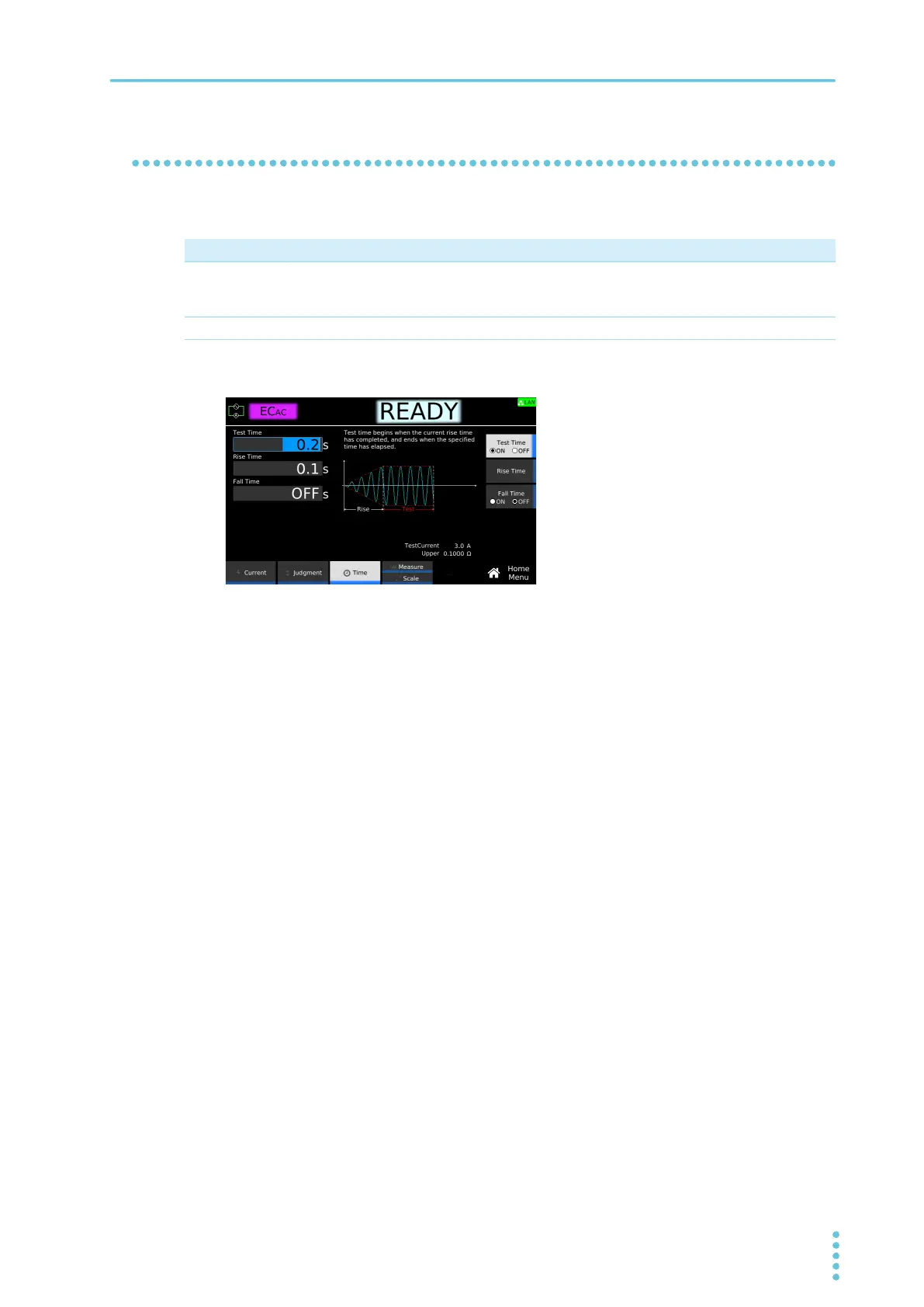 ON Set the time from when the Current rise time (p.96) has passed to the end of the test. If upper