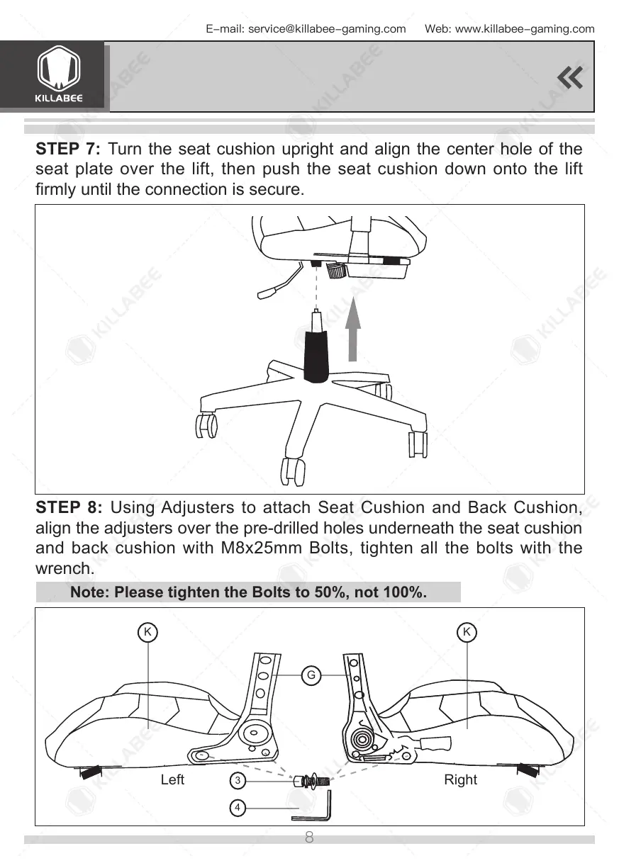 and back cushion with M8x25mm Bolts, tighten all the bolts with the