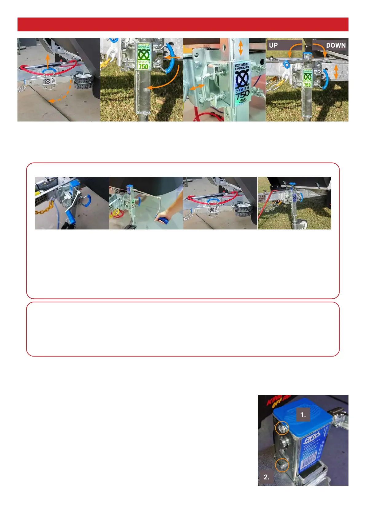 handle. Crank the handle in a clockwise direction lowering the jockey wheel,
