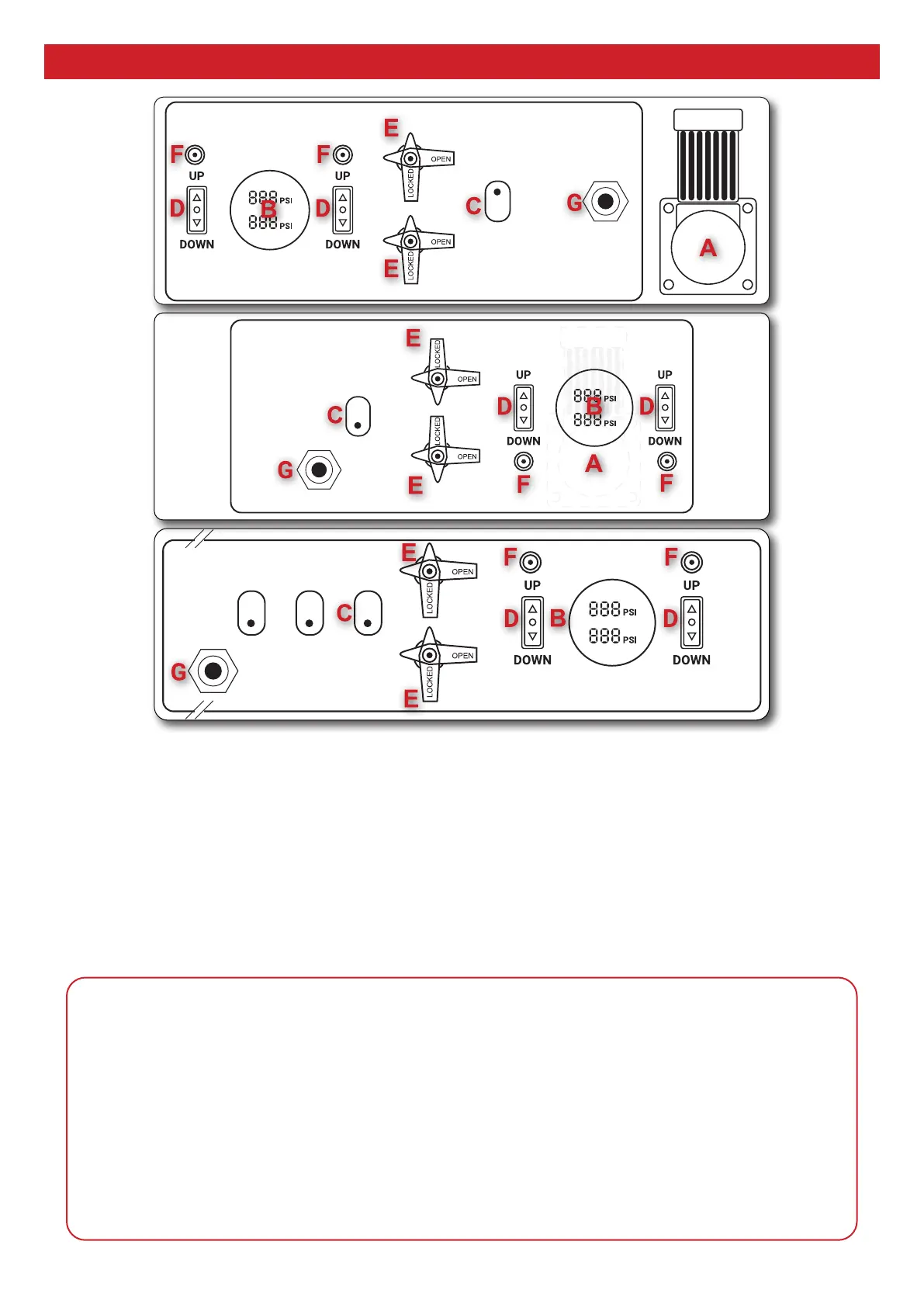 in ation inlets (F). (This ensures manual in ation can be achieved should a compressor fault occur).