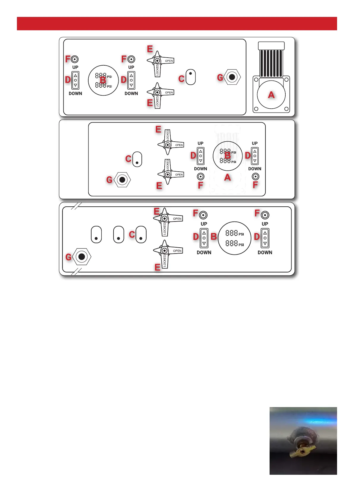 4. Spray & Inspect the ttings on the ‘air bag side’ of the OPEN/CLOSED (E) valves and check for leaks