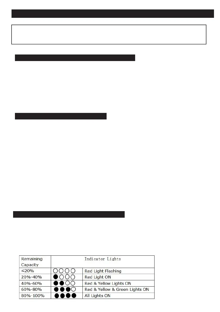 levels of charge remaining in the battery pack according to the following indicators: