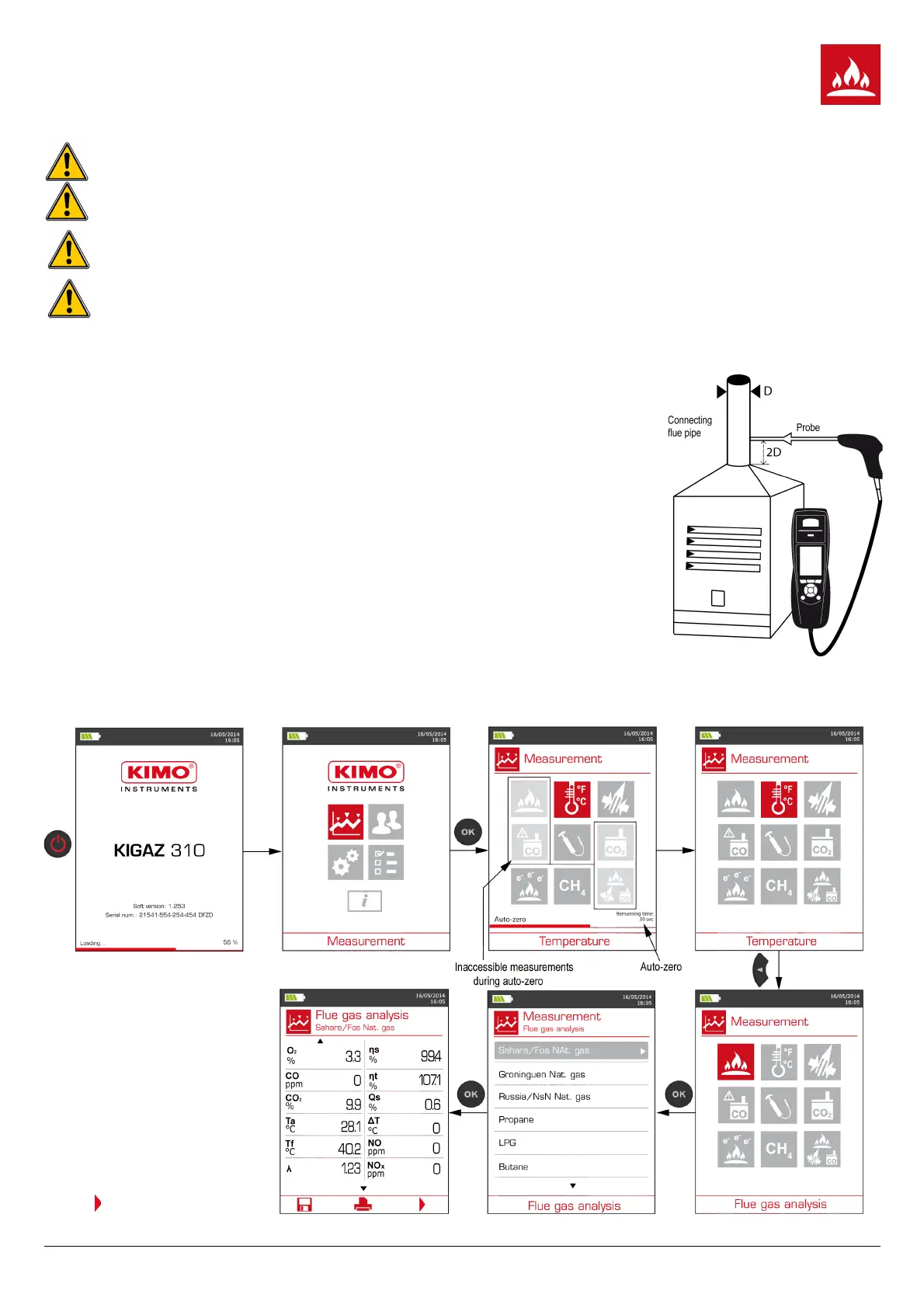 ➢ Insert the probe in the flue as shown on the figure for at least 3 minutes.