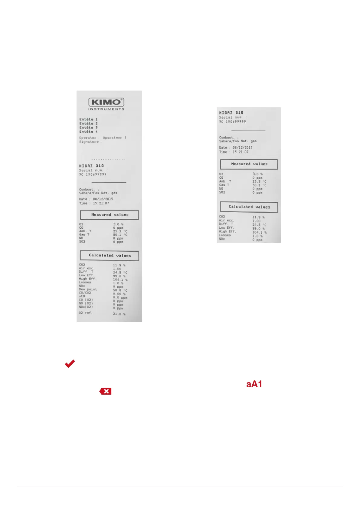 ➢ Press Esc to back to “Setting instrument” screen and validate modifications.