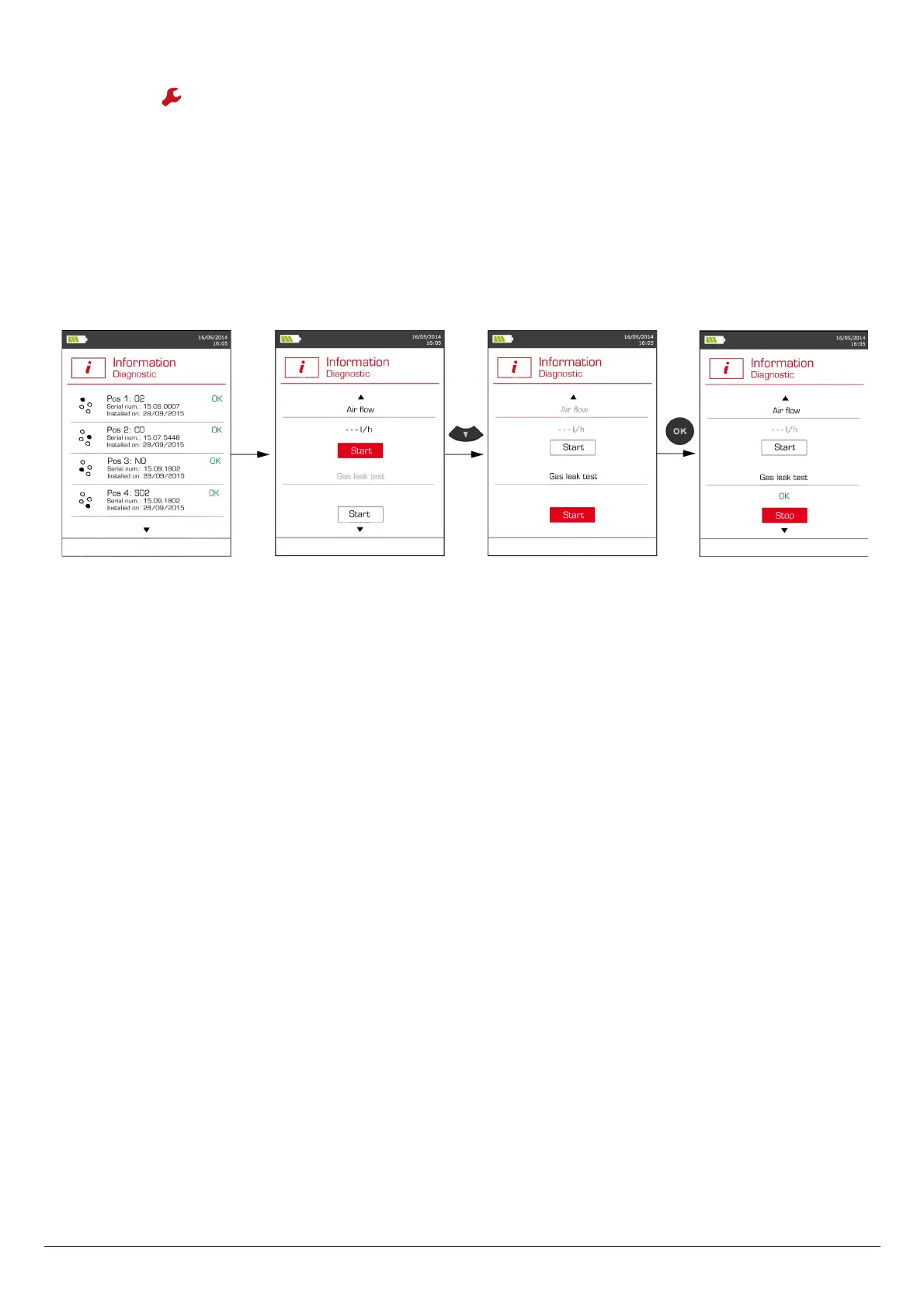 ➢ Press OK to launch the gas leak test.