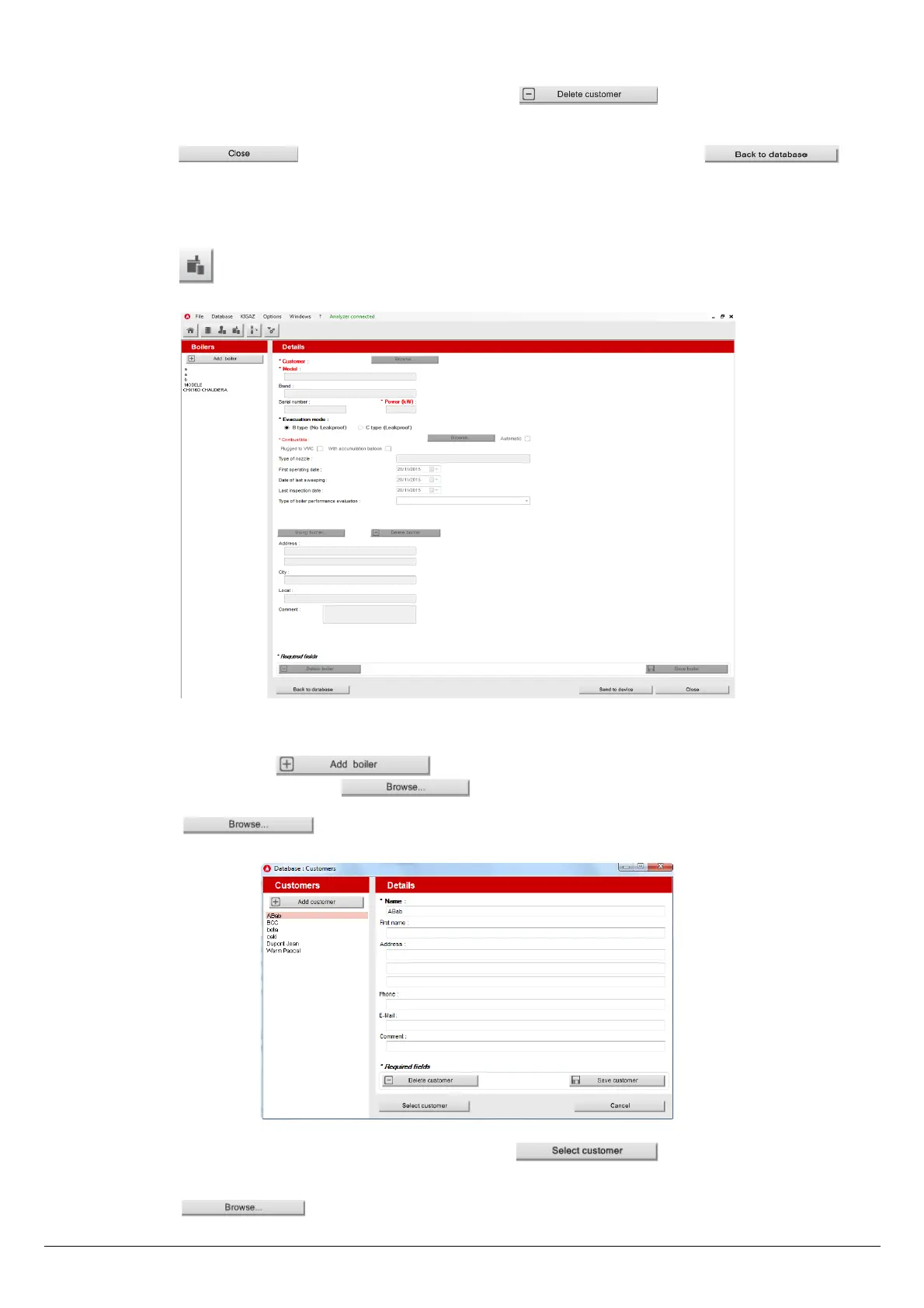 device (see page 54). Only the customers linked to an inspection are added to the “Customers” software database. The