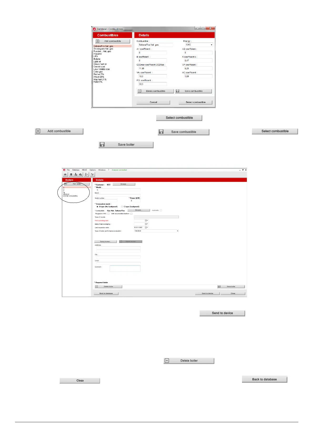 device (see page 54). Only the boilers linked to at least an inspection are added to the “Boilers” software database. The