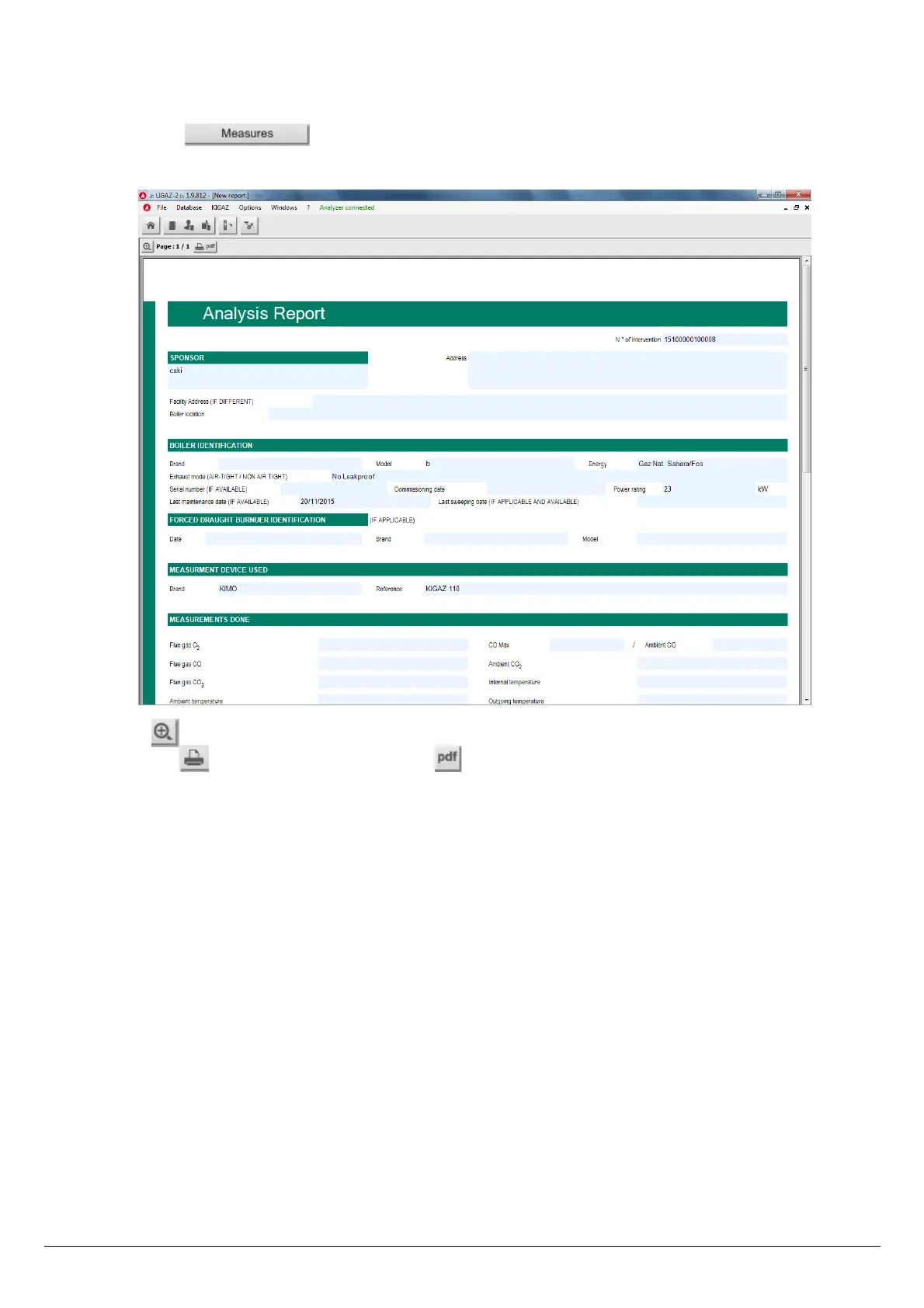 From the complete database screen, it is possible to edit a measurements report.