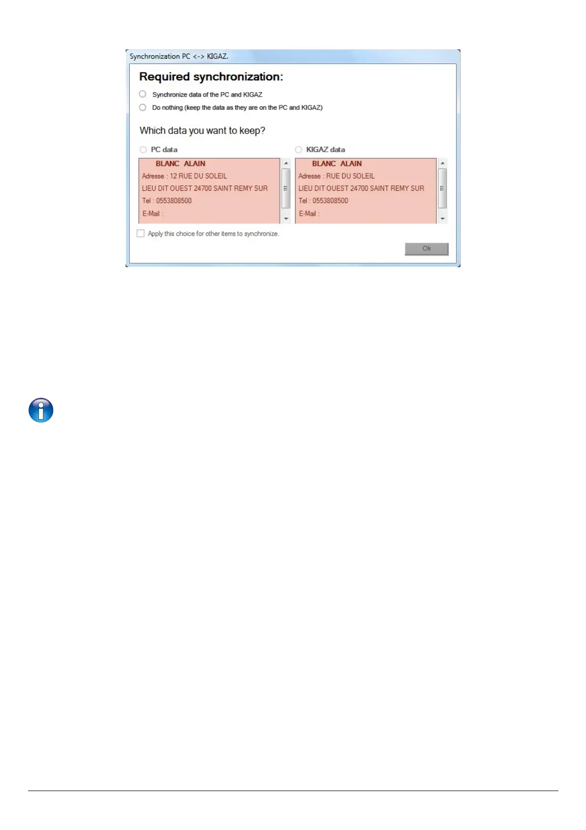 To do the same actions on the following data, tick the “Apply this choice for other items to synchronise” box.