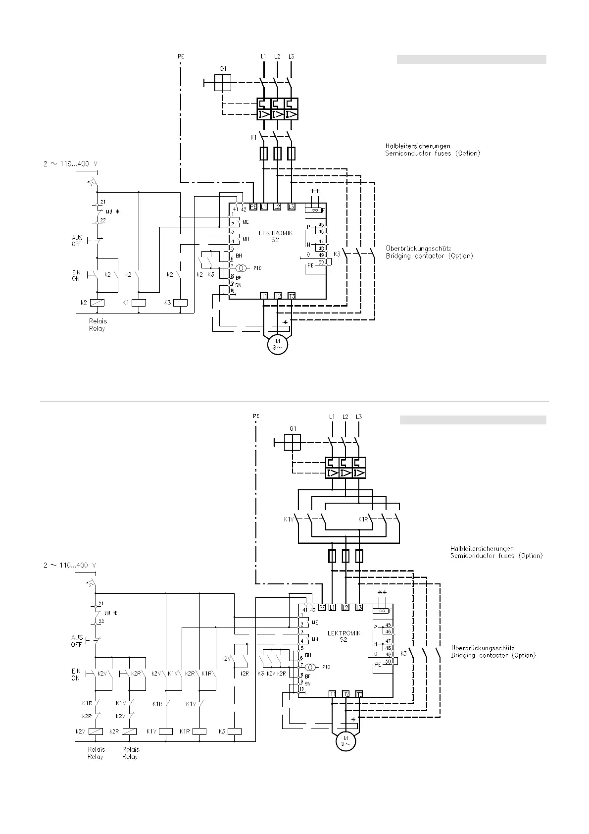 S2 als Sanftanlauf mit Sanftauslauf mit reversierenden Antrieben