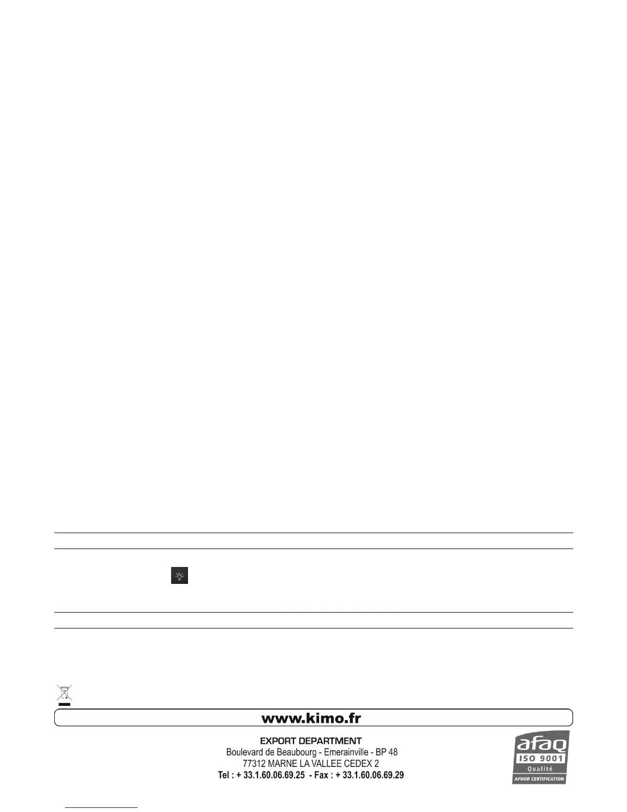Once returned to KIMO, required waste collection will be assured in the respect of the environment in accordance to 2002/96/CE guidelines relating to WEEE