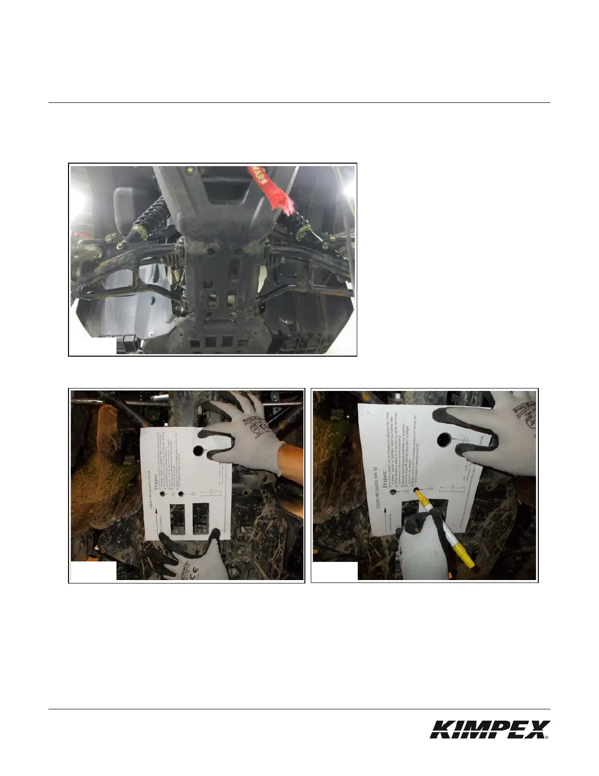 3) Alignez les divers repères du gabarit sur la plaque protectrice et marquez les trous de montage