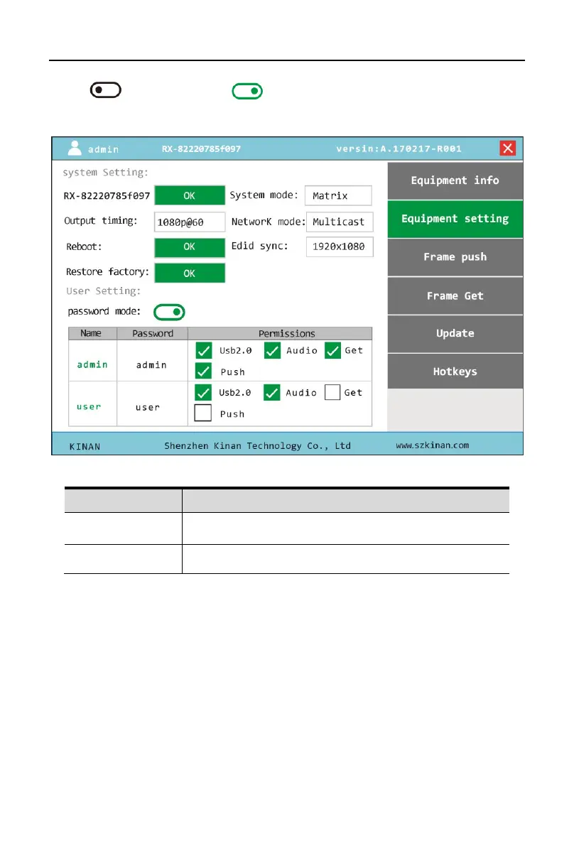 modify user password and set permissions.
