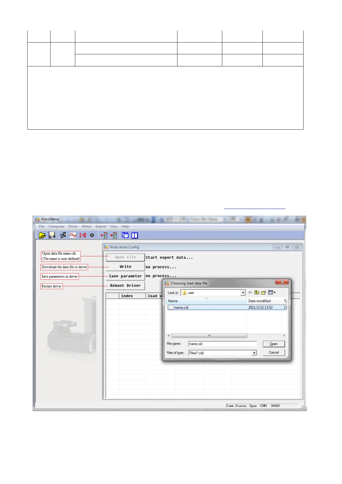 Use the CD-PC software to download data file to servo driver, then driver and motor can work