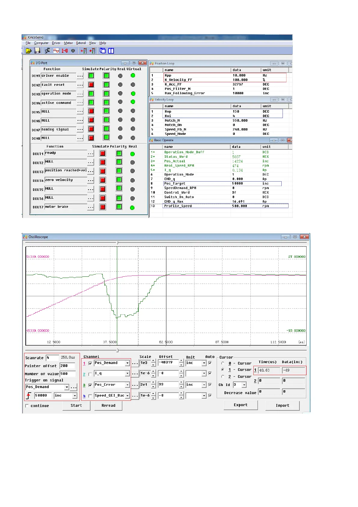 The oscilloscope is as following: max. following error is 69 inc.