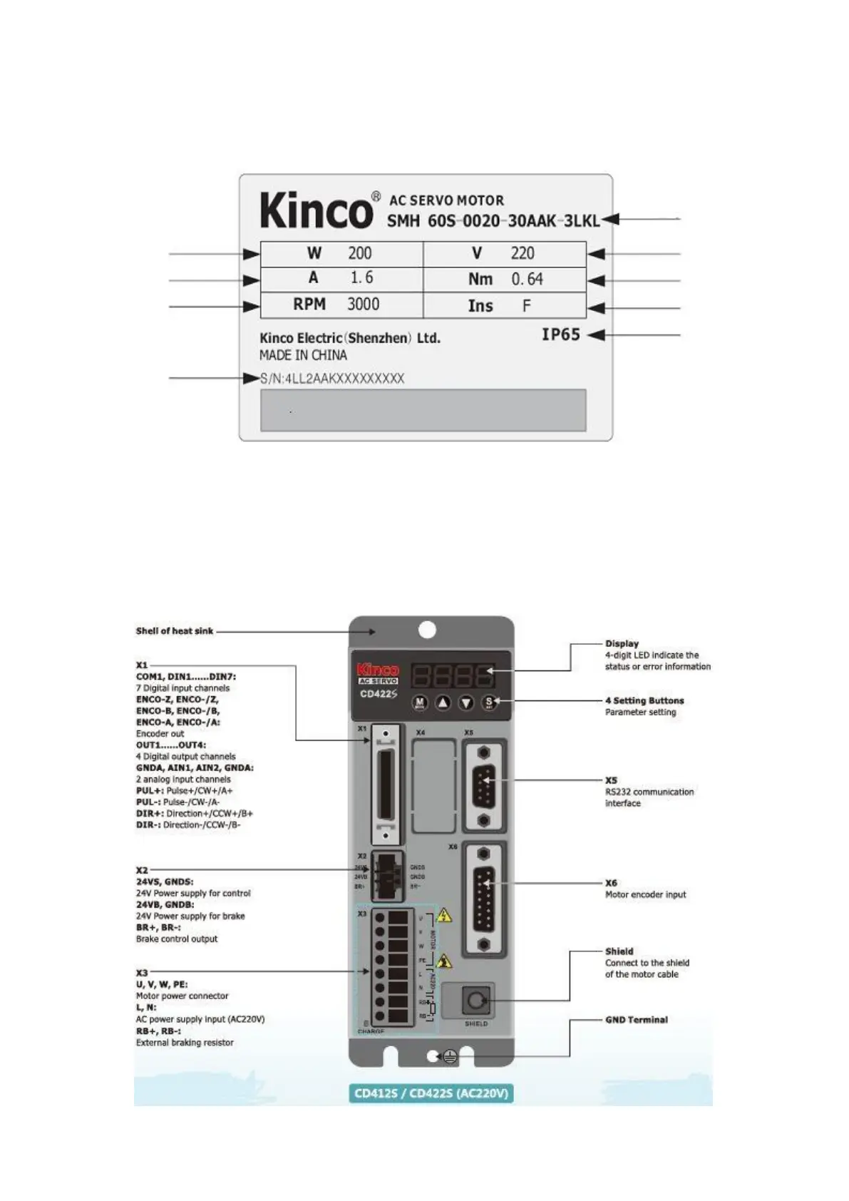 Kinco CD432S - Nameplate of Servo Motor; Component Names; Component Names of CD2 S Servo Driver