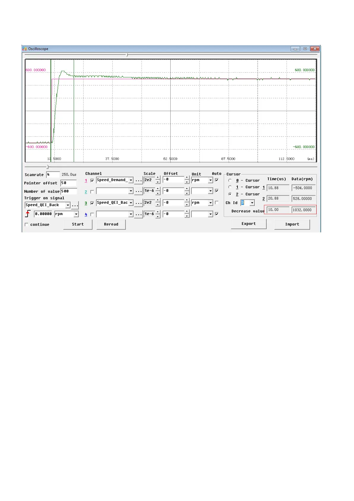 The oscilloscope is shown as follows:actual speed response is 10.00ms