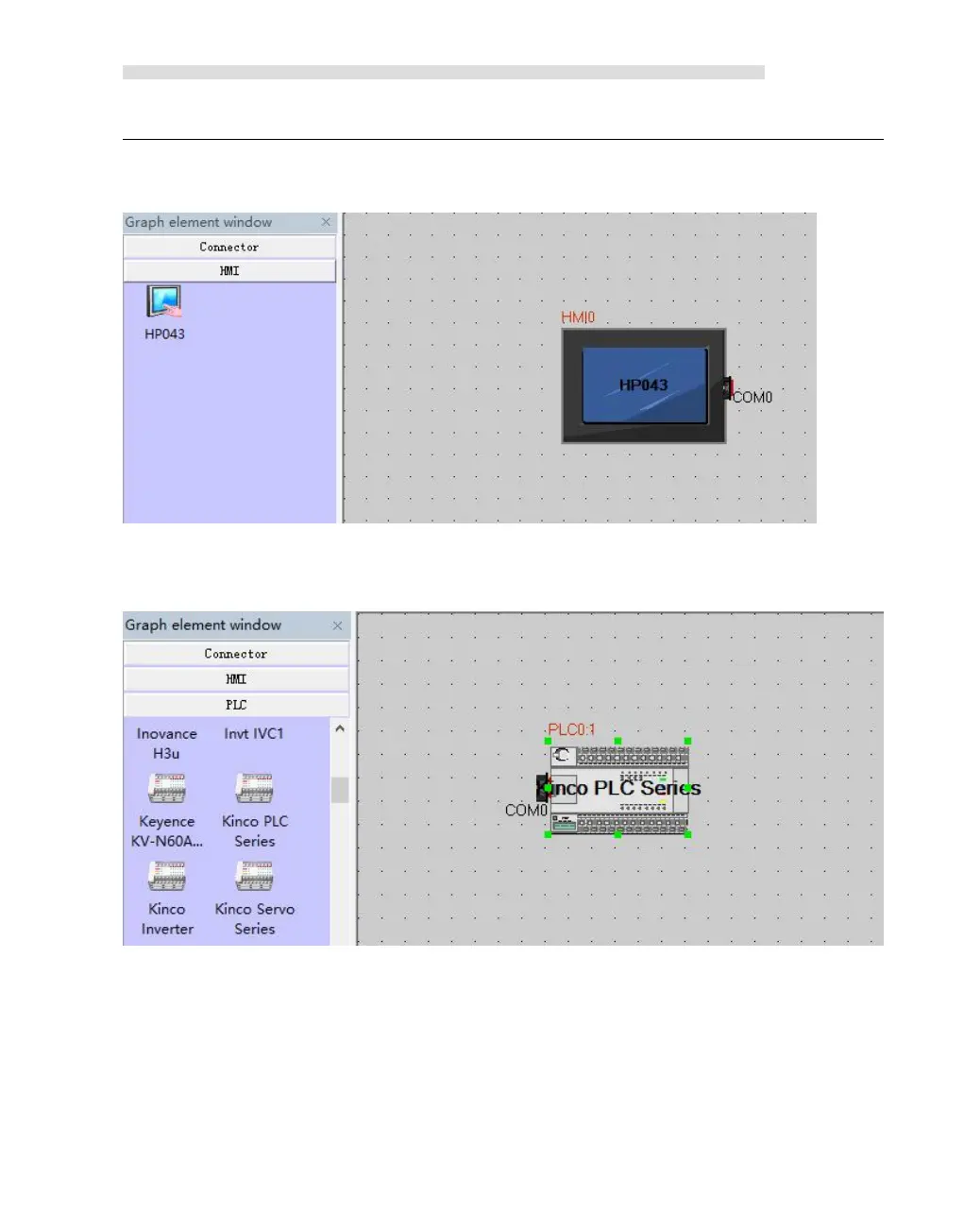 Drag “Kinco PLC series” in 【Graph element window】to construct window