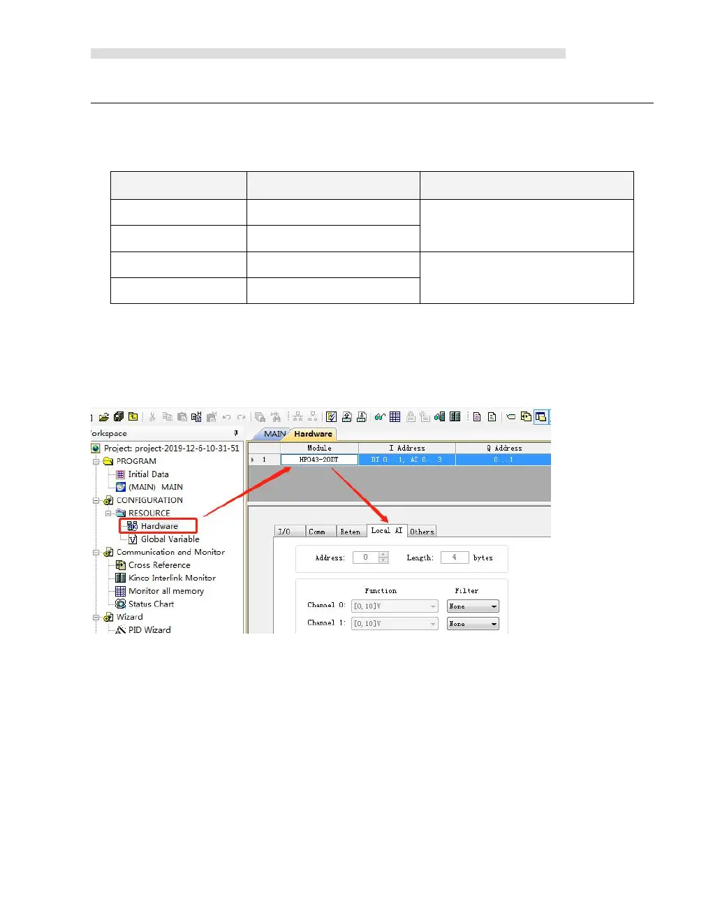 As above,The starting address of CPU module is specified as %AIW0,The module has two AI