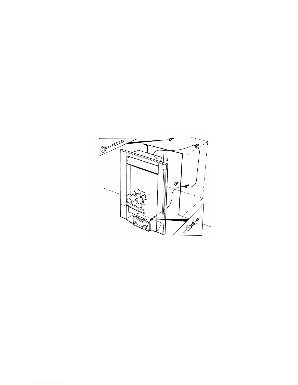 hole on each side of the lower rear of the fire. Carefully slide the fire