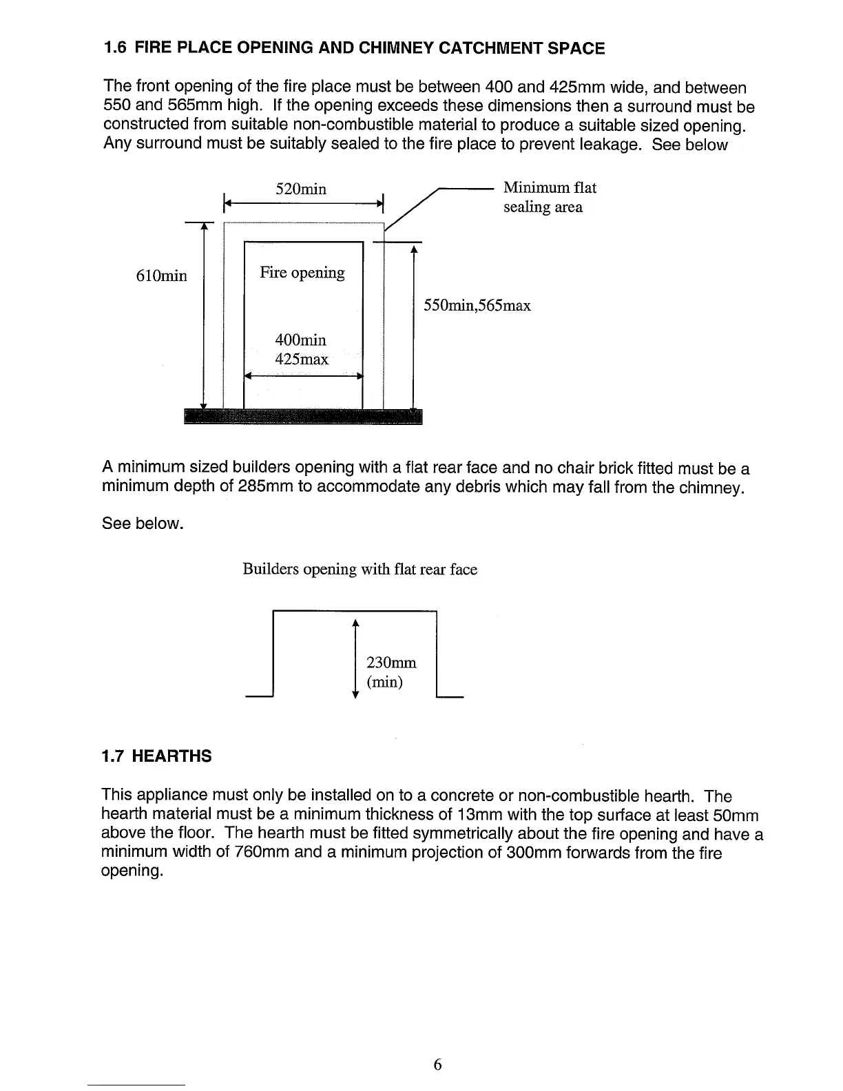 Kinder KF 800 - Fire Place Opening and Chimney Catchment Space; Hearths
