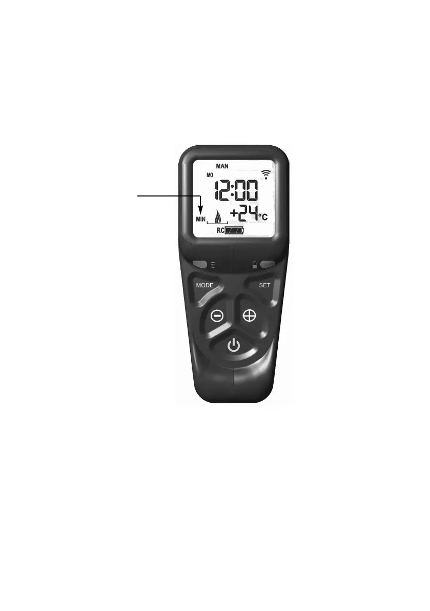 5.3.4 To increase the heat input level of the fire’s burner hold the handset as