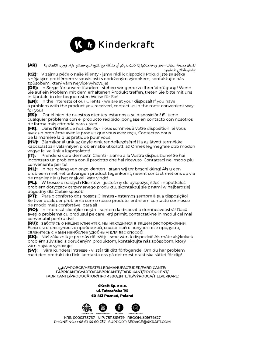 Kinderkraft EVERYDAY - Manufacturer and Contact Information; Manufacturer Details; Support and Contact Channels