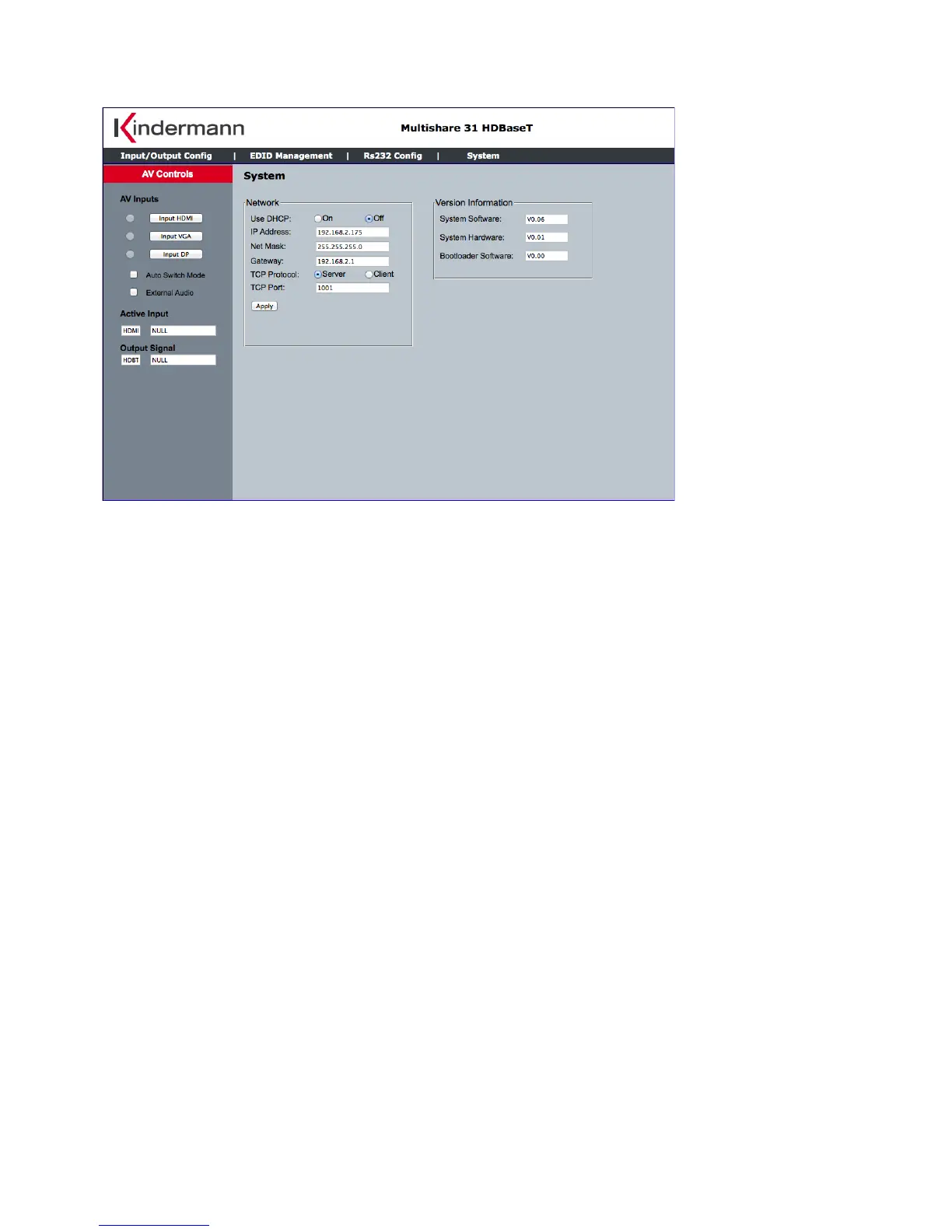 System and firmware information. User could modify the IP setting on the page. Please remember to click