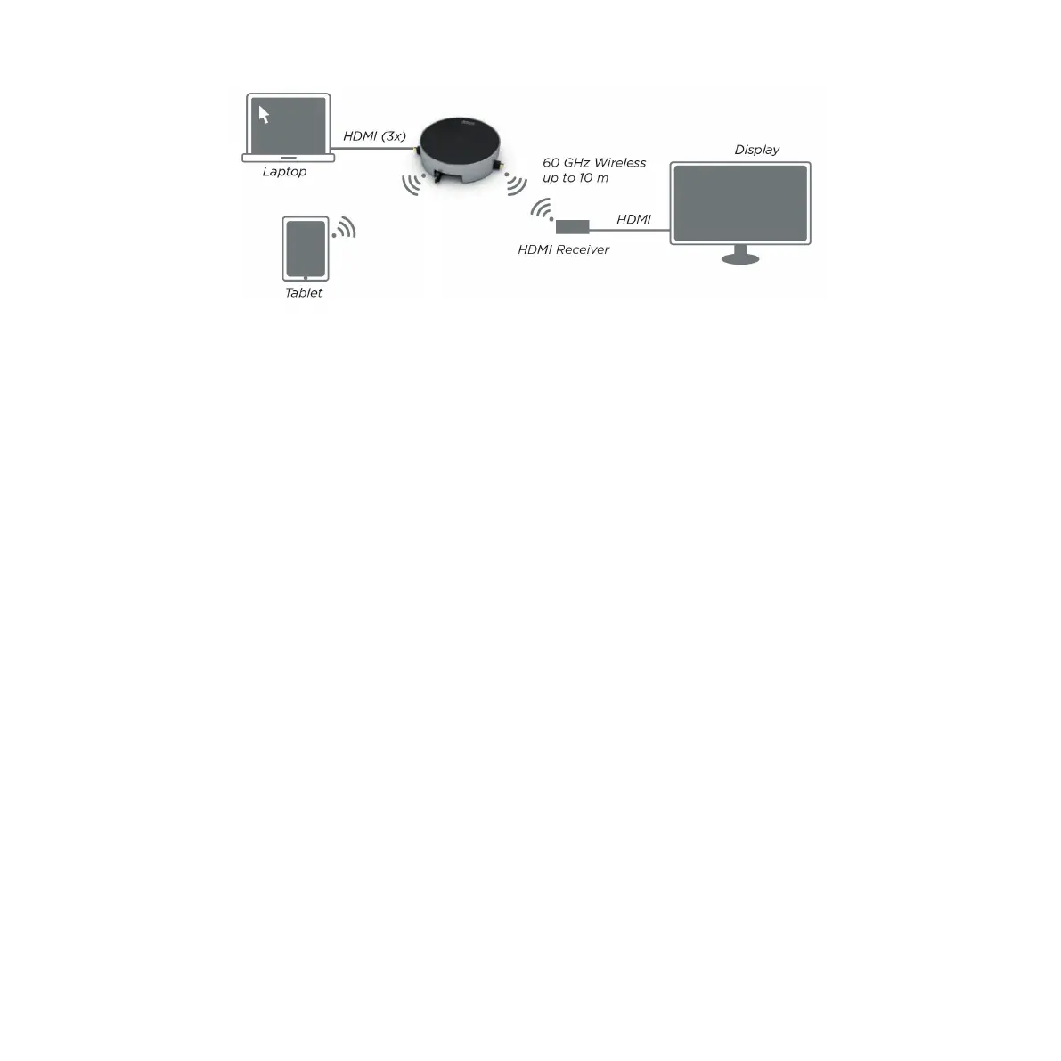 • Integrated 60GHz transmitter incorporated in the QuickPresent air tabletop device, receiver is connected to the display device.