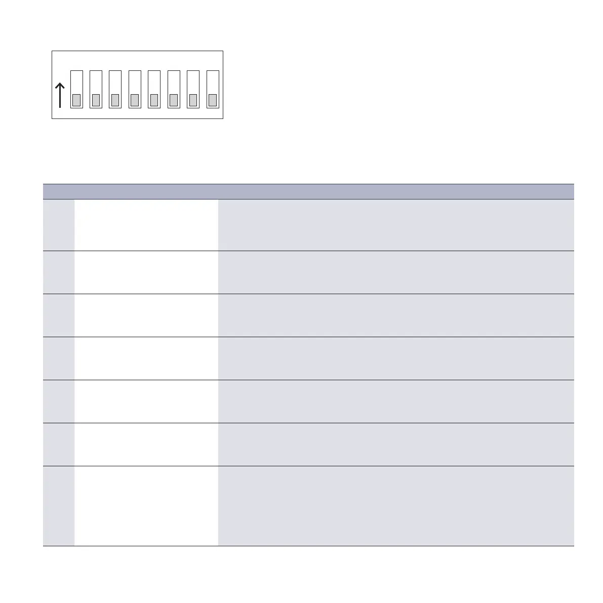 “OFF” (bottom switch position) according to the following table as desired.