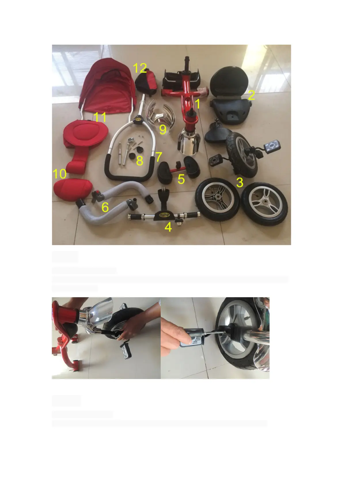 Please put front wheel connect with front forksee left picture, next fixed screw by tool -