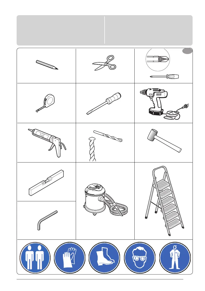 Kinedo GL6/ECLIPSE - Installation Tools; Required Tools List