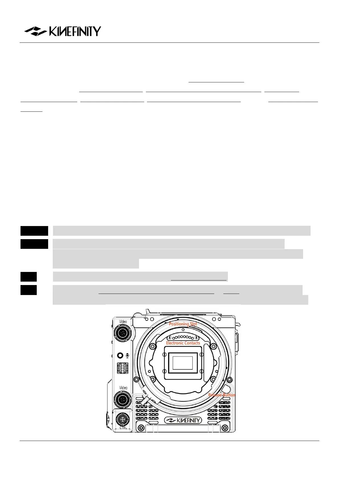 CAUTION As the FFD of KineMOUNT is very short, please don't try to attach any lens directly to