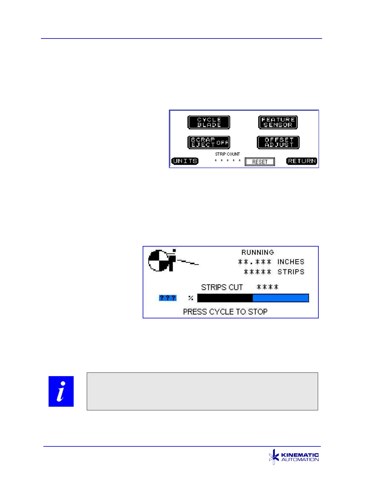 the actual number of strips already cut in this batch, and a bar graph, which shows