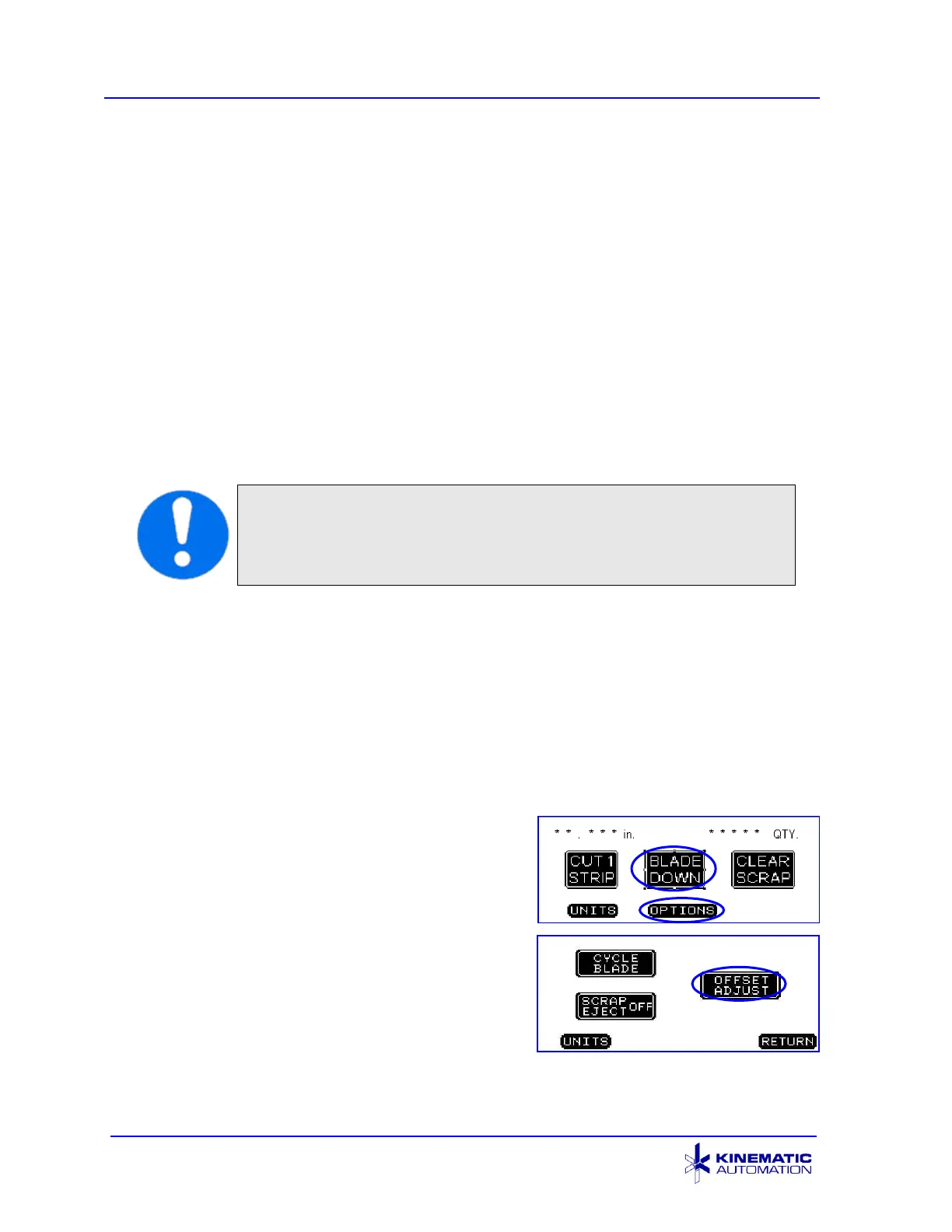 BLADE UP button. Press the CUT 1 STRIP