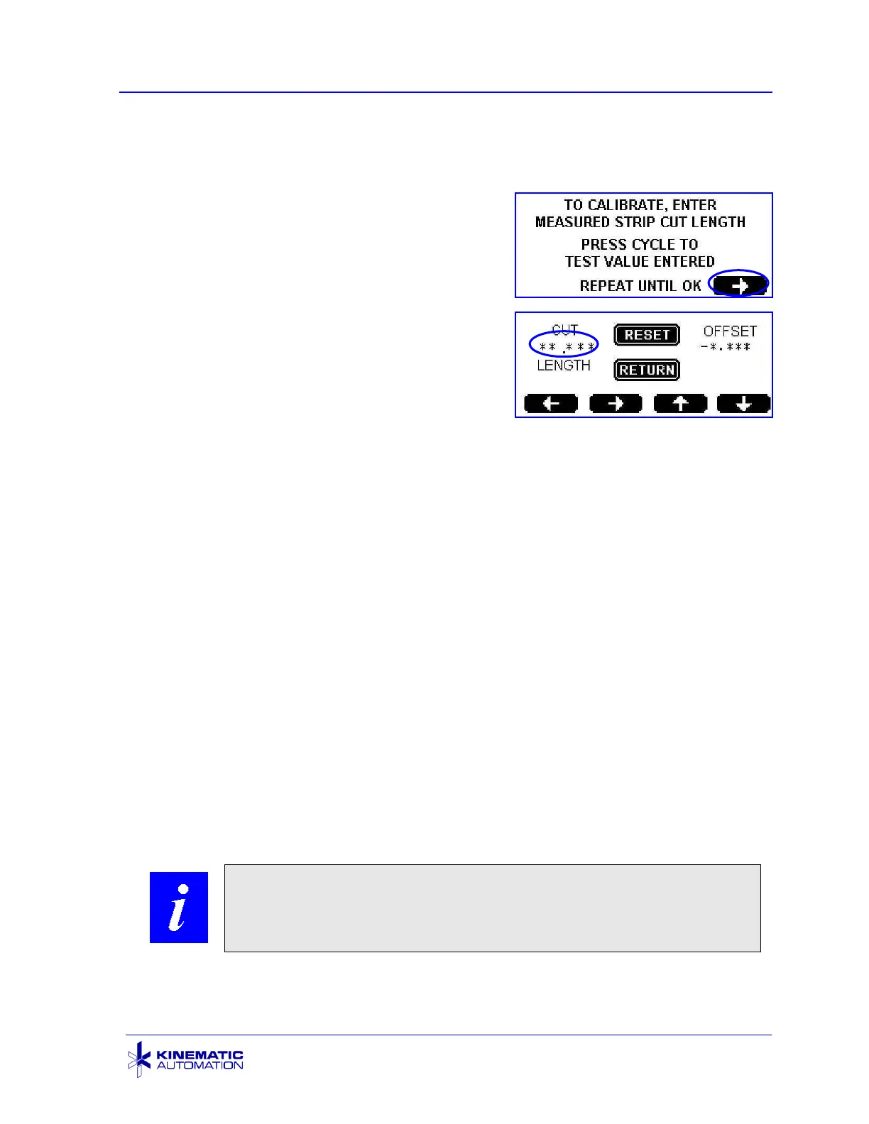 While still in the OFFSET ADJUST screen, press the CYCLE pushbutton below the
