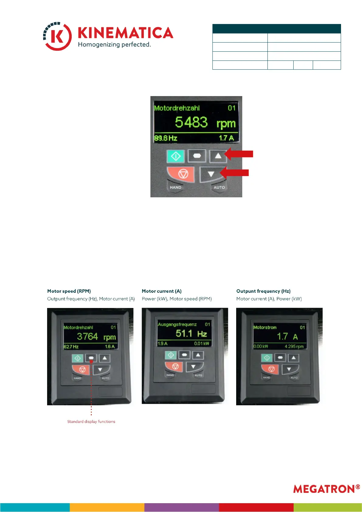NOTE: The motor speed (rpm), motor current (A) and Output frequency (Hz) can be