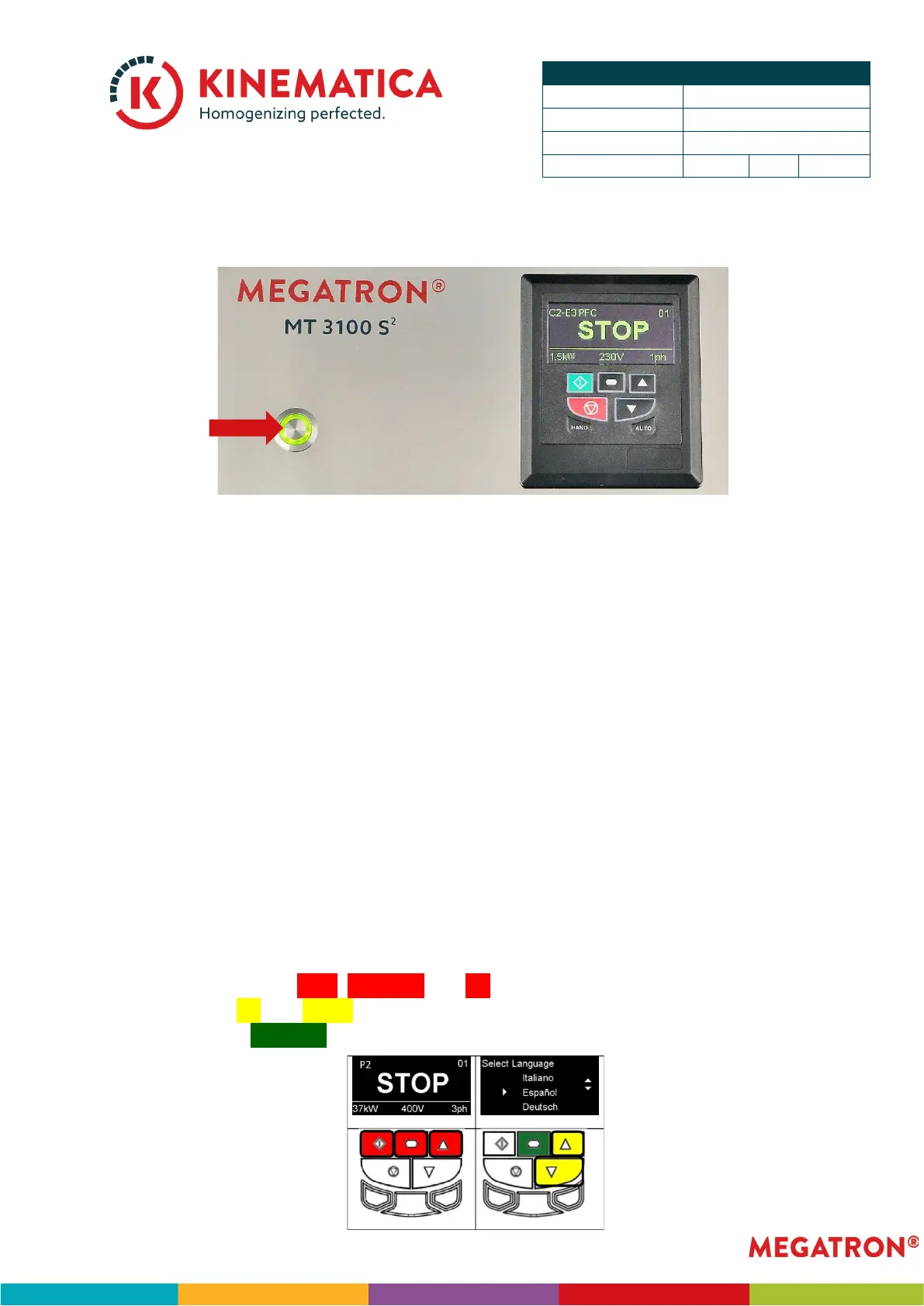 • Push the ON/OFF button. In OFF position, the light of the main switch and