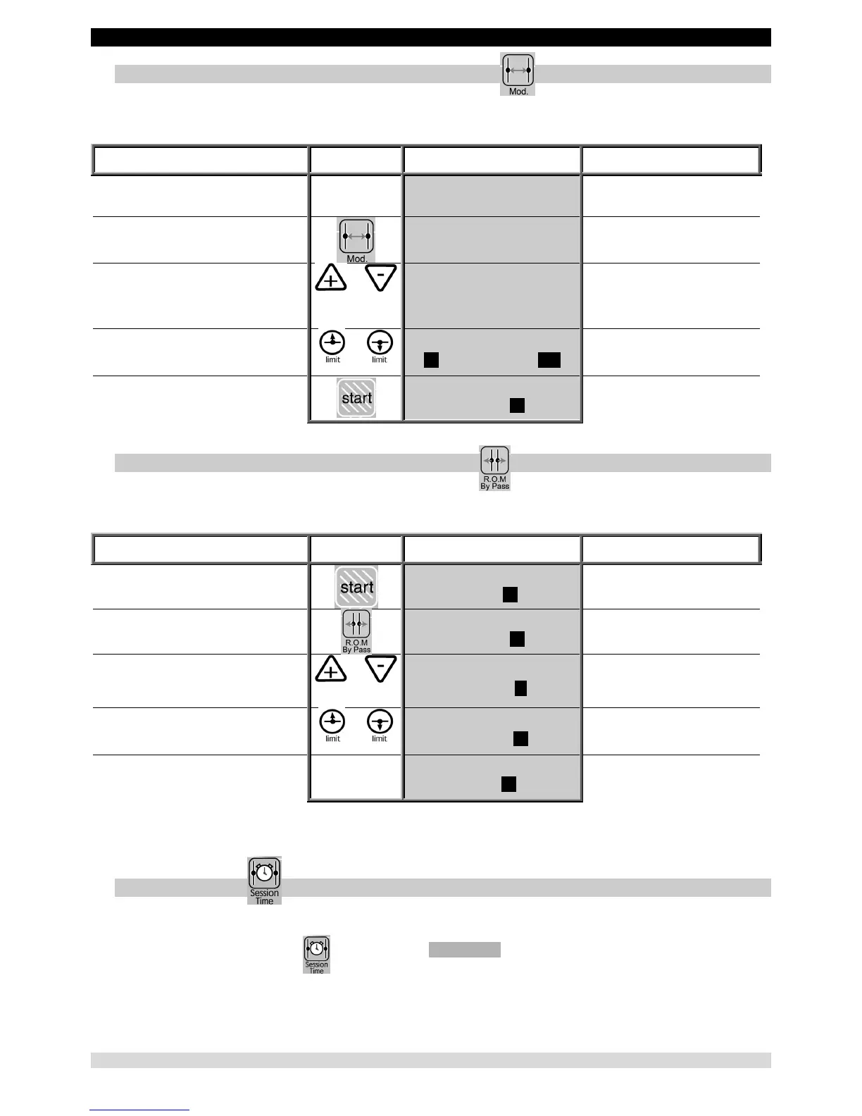 This function, BYPASS Mode, allows the maximum limits that a patient can tolerate to be defined and recorded, which