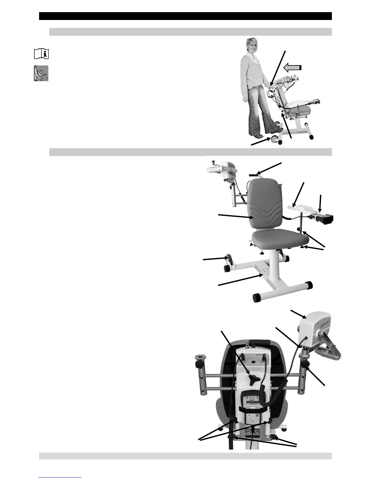 For easy transport of the unit, the chair has two wheels (3) and a handle
