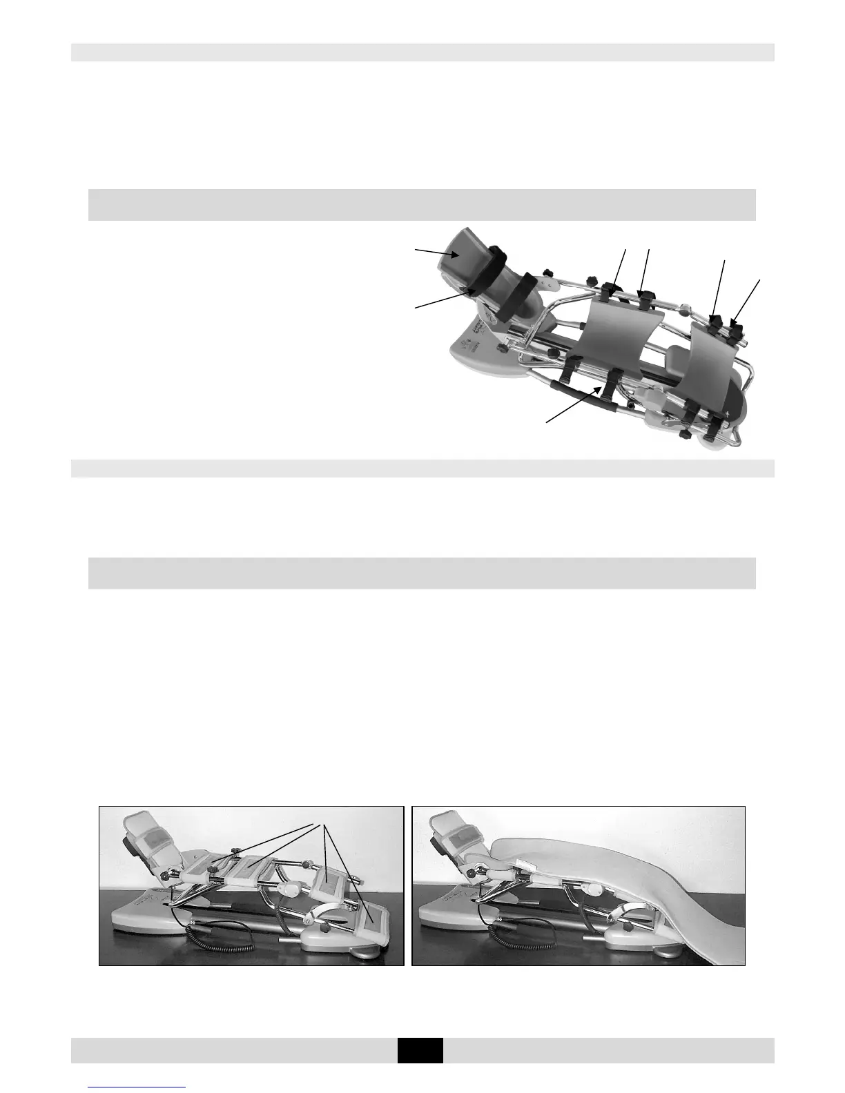 clips, fixed directly on the tubes of the machine's thigh and lower limb support segments, and straps with