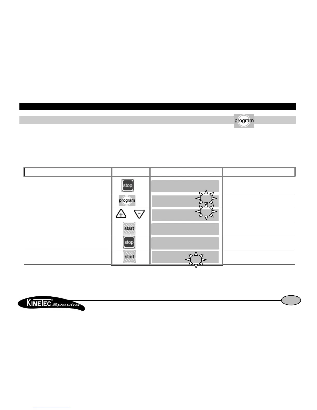 The KINETEC Spectra allows you to store up to 16 programs, including the type of treatment, ROM, speed, load, pauses and timer.