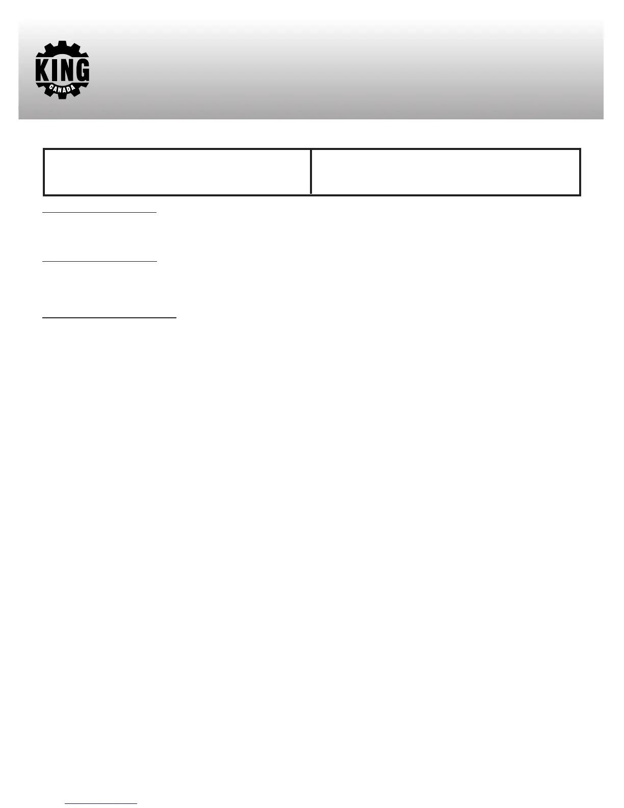 Replacement parts for this tool are available at our authorized KING CANADA service centers across Canada. For servicing, contact