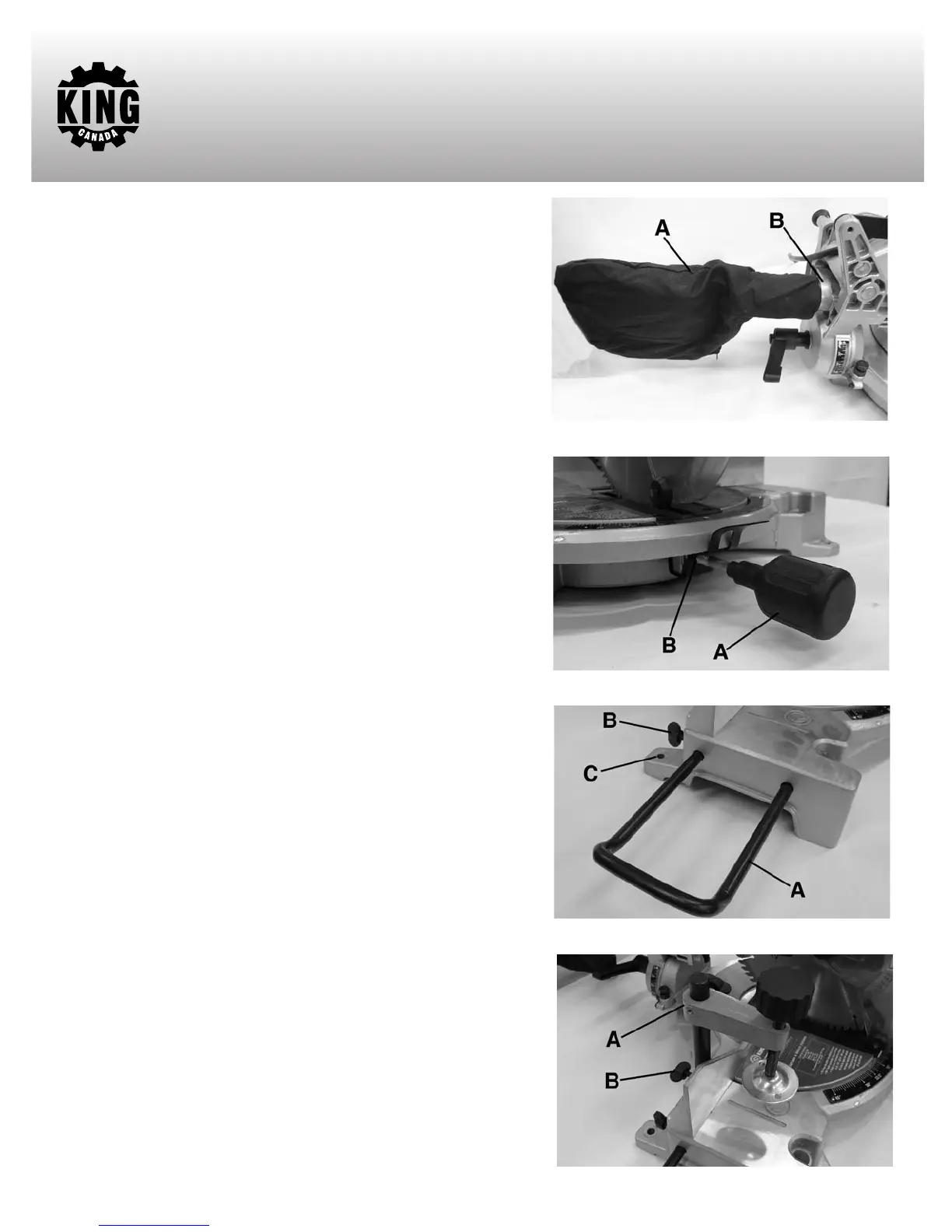 1. Assemble the table lock knob (A) Fig.4 to the front support bracket (B).