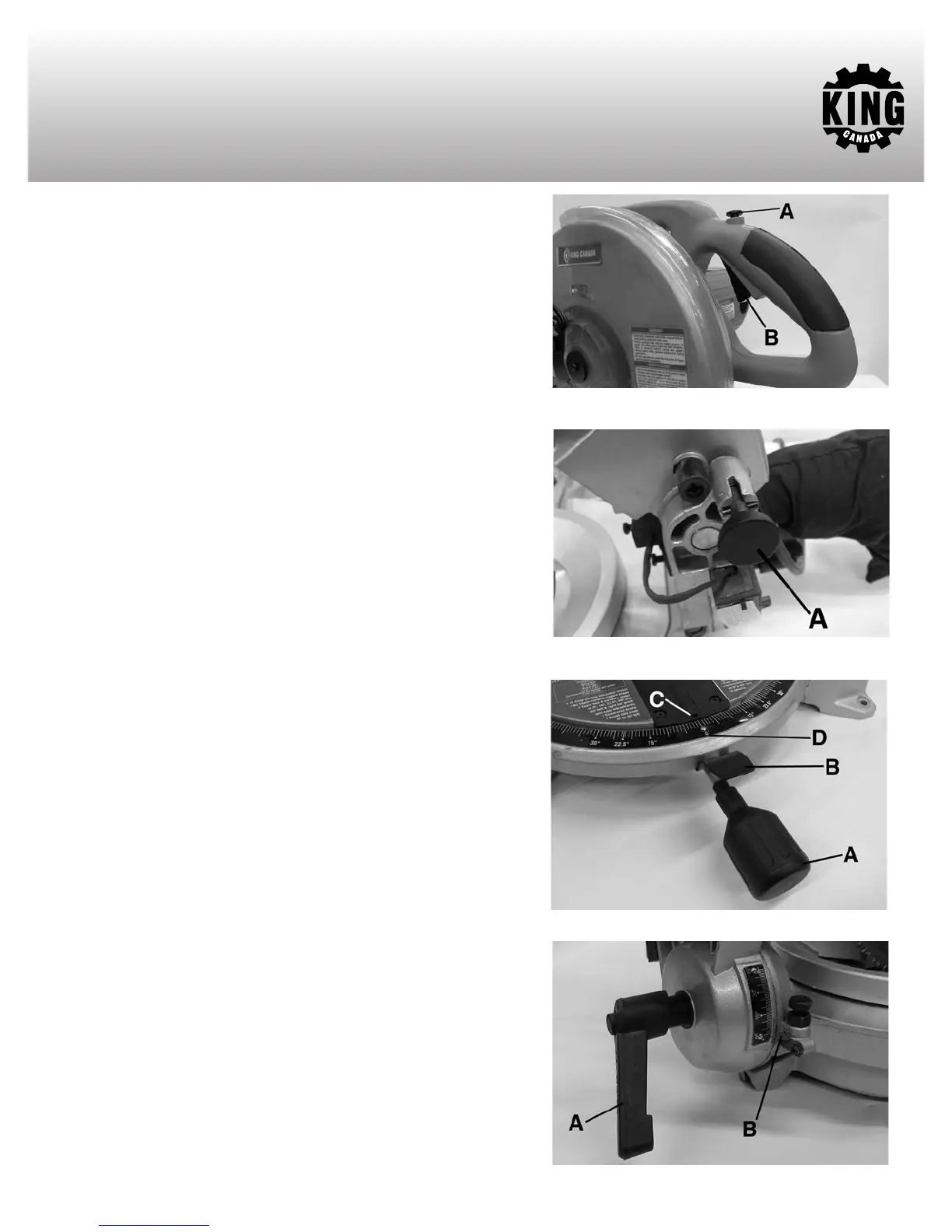 bevel angle and retighten lock knob (A). WARNING: LOCK KNOB (A)