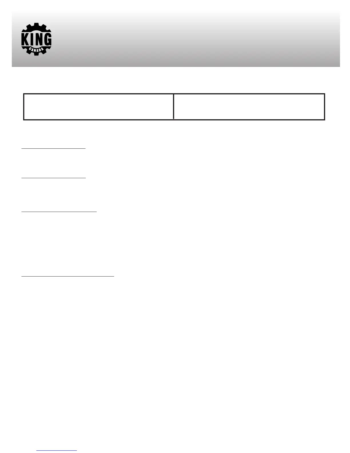 Replacement parts for this tool are available at our authorized KING CANADA service centers across Canada. For servicing, contact